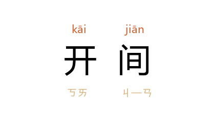 例如:「单开间」、「双开间」、「台湾传统建筑中,大型的三合院正堂有宽五开间或七开间。」