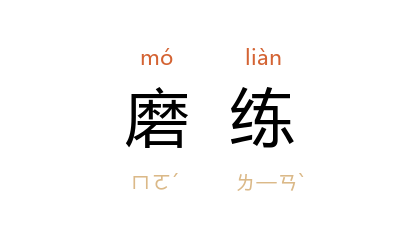 ⒈ 锻炼、考验。也作「磨炼@@@磨炼」。