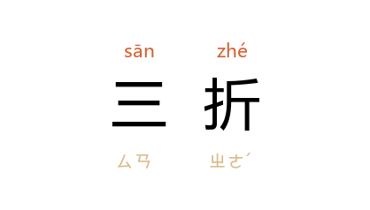 ⒈ 指三折笔。多次受挫。指路途多次转折。指三折肱。
