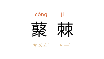 引《易·坎》:“係用徽纆,寘于丛棘。”孔颖达 疏:“丛棘谓囚执之处,以棘丛而禁之也。”《北史·高道穆传》:“如此则肺石之傍,怨讼可息,藂棘之下,受罪吞声者矣。”宋 苏辙 《祭亡嫂王氏文》:“兄坐语言收畀藂棘,窜逐 邾城,无以自食。”