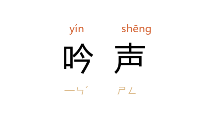 引唐 白居易 《宣州崔大夫忽以近诗见示因成长句寄题郡斋》诗:“谢玄暉 殁吟声寝,郡阁寥寥笔砚閒。”唐 温庭筠 《感旧陈情五十韵献淮南李仆射》:“书迹临 汤 鼎,吟声接 舜 絃。”宋 戴复古 《豫章东湖避暑》诗:“行坐自徜徉,吟声绕屋梁。”