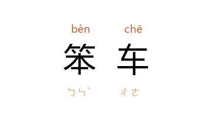 引《宋书·颜延之传》:“﹝ 延之 ﹞常乘羸牛笨车,逢 竣(延之 子)卤簿,即屏往道侧。”《资治通鉴·宋孝武孝建三年》载此事, 胡三省 注曰:“笨,部本翻,竹里也。一曰不精。”