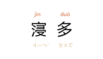 引宋 徐度 《却扫编》卷上:“唐 节度使初皆领一道,故以本道为名。若 河西、河南、劒南、关内 之类是也。厥后分镇寖多,所领不能尽有一道,则以其地为名。”宋 陆游 《老学庵笔记》卷六:“国初,举人对策皆先写策题,然策题不过一二十句。其后策题寖多,而写题如初。”罗惇曧 《文学源流·总论》:“自字孳乳而寖多,文参错而善变。”