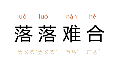 ⒈ (难nán)语出《后汉书·耿弇传》:“将军前在南阳建此大策,常以为落落难合,有志者事竟成也。”亦作:落落寡合。