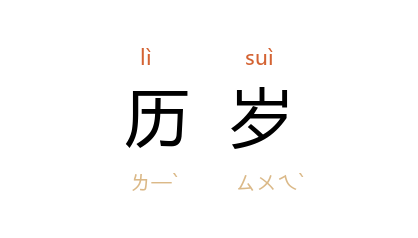 引《战国策·赵策一》:“夫用百万之众,攻战踰年歷岁,未见一城也。”《后汉书·孔融传》:“日磾 随从,周旋歷岁。”唐 韩愈 《欧阳生哀辞》:“不见 詹 久者,惟 詹 归 闽 中时为然;其他时与 詹 离,率不歷岁。”