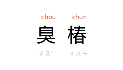 ⒈ 樗之俗称。以其有臭味,故名。皮和根均可作药用。又称为虎目树、大眼桐。