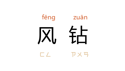 ⒈ 开凿岩石用的风动工具,利用压缩空气使活塞作往复运动,冲击钎子。多用于开凿炮眼。也叫凿岩机。