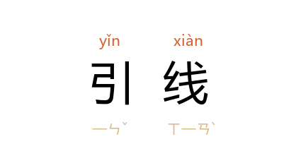 ⒈ 唐·韩愈《赠侯喜》诗:“举竿引线忽有得,一寸才分鳞与鬐。”拉线。引火线,导火线。比喻直接引起事变的事件。方言。缝衣针的别称。指铁路或公路连接桥梁的一段线路。犹先导。介绍;拉拢。内线,指告密及引路捕人者。