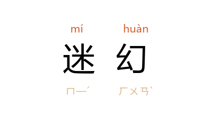 引叶圣陶 《一个青年》:“一迭的书翰藏在口袋里,手按着时就觉得颇有把握,教他不能不兴起一种迷幻幽艳的遐想了。”《花城》1981年第5期:“不多久,一个难题,带着迷幻的阴影,突然送到我面前来了。”