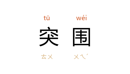 引《宋书·卷五〇·刘康祖传》:「夜入人家,为有司所围守,康祖突围而去,并莫敢追。」