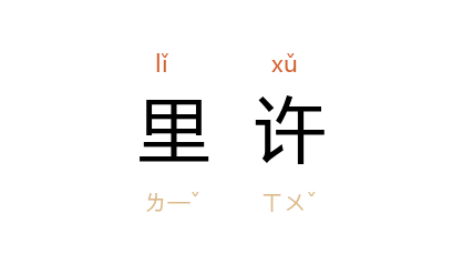 引唐 戴叔伦 《听歌回马上赠崔法曹》诗:“秋风里许杏花开,杏树傍边醉客来。”宋 罗大经 《鹤林玉露》卷十五:“杨诚斋 云:‘诗固有以俗为雅,然亦须经前辈鎔化,乃可因承。如 李 之“耐可”、 杜 之“遮莫”、 唐 人“里许”、“若箇”之类是也。’” 章炳麟 《新方言·释词》:“今 松江、太仓 言处言许,音皆如化。谓内曰里许,音如里化。”