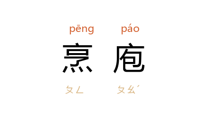 引宋 张九成 《食苦笋》诗:“烹庖入盘俎,点酱真味足。”明 陆采 《明珠记·江会》:“龙王留我吃酒,百般海味烹庖。”康有为 《大同书》戊部第一章:“奴非有他,供服役、扫除、烹庖之事,谓之奴云尔。”