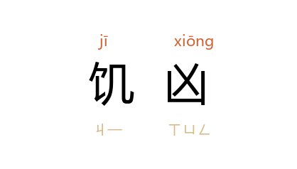 引《后汉书·侯霸传》:“歆(韩歆 )又证岁将飢凶,指天画地,言甚刚切,坐免归田里。”宋 叶适 《沉仲一墓志铭》:“天行或飢凶,民利欲建置,君率先推与无疑。”