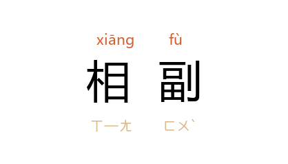引汉 王充 《论衡·案书》:“薄厚不相胜,华实不相副,则怒而降祸。”宋 苏轼 《与侄孙元老书》之二:“姪孙近来为学何如?想不免趋时。然亦须多读史,务令文字华实相副,期於适用,乃佳。”《金史·选举志四》:“旧制,每季到部求仕人,识字者试以书判,不识字者问以疑难三事;体察言行相副者。”鲁迅 《集外集·<奔流>编校后记五》:“不过所谓奔流社的‘执事者’,其实并无和这种一堂皇名号相副的大人物。”