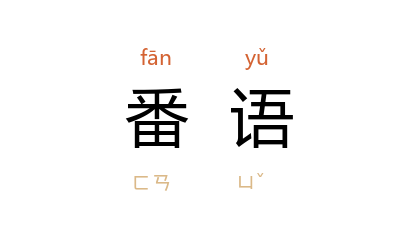 引唐 卢纶 《腊日观咸宁王部曲娑勒擒豹歌》:“阴方质子纔三十,译语受词番语揖。”《清史稿·选举志二》:“三五年后,有此一种读书明理之人,精通番语,凡通商,督、抚衙署及海关监督,应设繙译官承办洋务者,即於馆中遴选派充。”