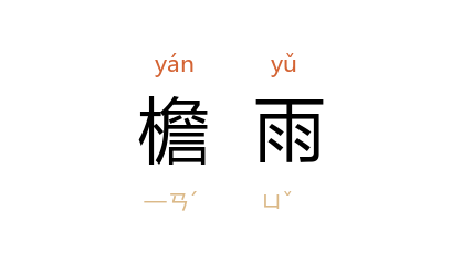 引唐 杜甫 《陪章留后侍御宴南楼》诗:“野云低度水,簷雨细随风。”由屋檐滴落的雨水。 唐 杜甫 《秦州杂诗》之十七:“檐雨乱淋幔,山云低度墙。”南唐 冯延巳 《归自谣》词:“何处笛,深夜梦回情脉脉。竹风檐雨寒窗滴。”