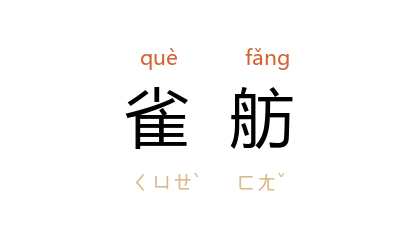引清 孔尚任 《桃花扇·馀韵》:“五侯閫外空狼燧,二水洲边自雀舫。”王季思 注:“雀舫,即朱雀舫,是一种游船。”清 曹寅 《闻恢复长沙志喜》诗之三:“雀舫空沉泊,鳶梯莫暂停。”