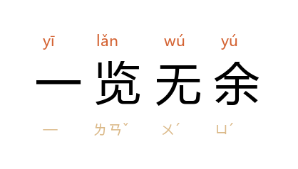 ⒈ 后以“一览无餘”谓一眼即可全见。