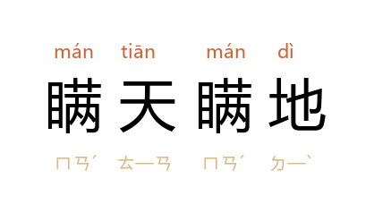 引元 关汉卿 《哭存孝》第一折:“你便休得要瞒天瞒地,你则会帐房里闲坐的,咱可便委其实。”亦作“瞒天昧地”。 元 无名氏 《闹铜台》第一折:“我那日离山营,到 铜城 见仓官坏法胡行径,专瞒天昧地不公平。”
