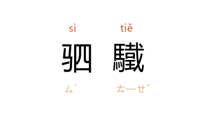 ⒈ 亦作“駟铁”。驾一车之四匹赤黑色马。