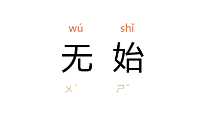 引唐 陈子昂 《感遇》诗之七:“茫茫吾何思?林卧观无始。”元 李好古 《张生煮海》第一折:“贫道乃 东华上仙 是也。自从无始以来一心好道,修炼三田。”王国维 《<红楼梦>评论》第四章:“今设有人焉,自无始以来,无生死,无苦乐,无人世之罣碍,而唯有永远之知识,则吾人所寳为无上之美术,自彼视之,不过蛩鸣蝉噪而已。”