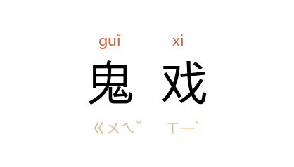 引清 太平客人 《<何典>序》:“其事实则离不开鬼心,扮鬼脸……做鬼戏。”《光明日报》1963.9.9:“目前戏剧界讨论的有如下一些问题:对于推陈出新方针的认识和态度问题……对于鬼戏的看法问题。”