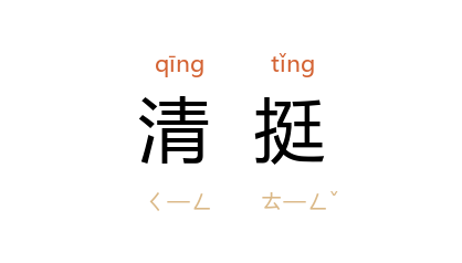 引清 何世璂 《然鐙记闻》:“诗要清挺。纤巧浓丽,总无取焉。”郑振铎 《插图本中国文学史》第十四章三:“他的诗,虽只有左列的一首《神情诗》的摘句,却可见出其中是充溢着清挺的画意的。”
