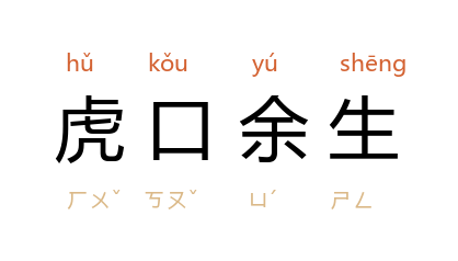 ⒈ 从老虎嘴边逃出性命。比喻经历大危险侥幸不死。