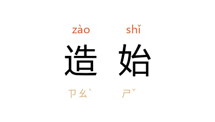 引三国 魏 阮籍 《乐论》:“故造始之教谓之风,习而行之谓之俗。”宋 王安石 《和吴冲卿鵶树石屏》:“吾又以此知工伟妙之作不在百世后,造始乃与元气并。”《资治通鉴·晋武帝太康十年》:“今陛下每精於造始而略於考终,此政功所以未善也。”