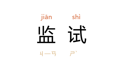 引《二十年目睹之怪现状·第四三回》:「监临主考之处,还有同考官,内外监试,提调,弥封,收掌,巡缉,各官,挤满了一大堂。」