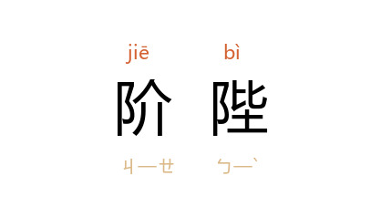引《史记·刺客列传》:“王僚 使兵陈自宫至 光 之家,门户阶陛左右,皆 王僚 之亲戚也。”北魏 郦道元 《水经注·泗水》:“城内有 汉高祖 庙,庙前有三碑, 后汉 立庙基,以青石为之,阶陛尚存。”宋 叶适 《<罗袁州文集>序》:“钱穀之尘污几砚,刑狱之腥衊阶陛,官业虽登而文义耗矣。”