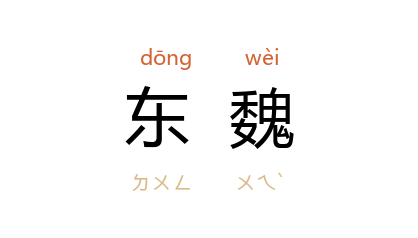 ⒈ 朝代名。(西元534~550)北魏孝武帝西奔后,高欢别立孝静帝,称为「东魏」。