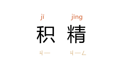 引《韩非子·解老》:“身以积精为德,家以资财为德,乡国天下皆以民为德。”汉 班固 《白虎通·情性》:“脾之为言,辨也,所以积精禀气也。”《黄庭内景经·仙人》:“仙人道士非有神,积精累气以为真。”宋 苏轼 《南华寺》诗:“我本修行人,三世积精鍊。”