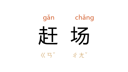 例如:「今晚他有三个秀约,一定得赶场了。」