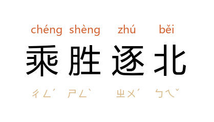 ⒈ 乘:趁,因;北:败。指乘着胜利继续追击。