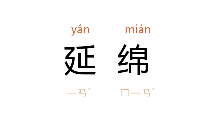 引唐 元稹 《竞渡》诗:“延绵復几岁,逮及 羲 与 轩。”唐 唐彦谦 《春草》诗:“天北天南遶路边,托根无处不延绵。”徐迟 《地质之光》:“延绵的 燕山 褶皱带作了首都的苍翠的屏障。”