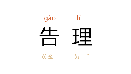 引《清平山堂话本·合同文字记》:“孩儿,明日去 开封府 包府尹 处,告理被晚伯母、亲伯父打伤事。”《初刻拍案惊奇》卷十一:“若查出被殴伤命,就该到府县告理。”《清史稿·睿忠亲王多尔衮传》:“斗殴、田、婚细故,就有司告理。”