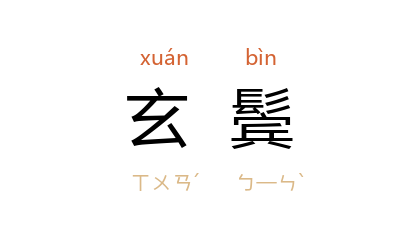 引《淮南子·道应训》:“深目而玄鬢,泪注而鳶肩。”汉 王粲 《七释》:“鬒髮玄鬢,修项秀颈。”唐 皇甫冉 《送从弟豫贬远州》诗:“忧来沽 楚 酒,玄鬢莫凝霜。”