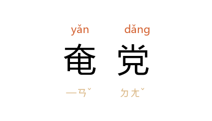 ⒈ 以宦官为主结成的帮派。奄,也写作“阉”。 《明史》有《阉党传》。