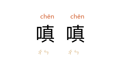 ⒈  众盛貌。 《说文·口部》:“嗔,盛气也。今本《诗·小雅·采芑》“嗔嗔”作“闐闐”。