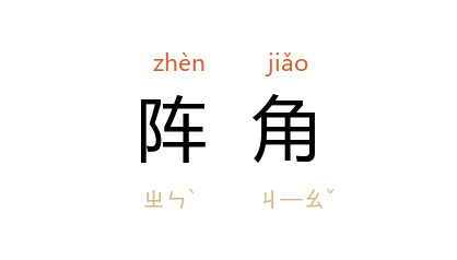 引《三国演义》第五回:“吕布 荡开阵角,倒拖画戟,飞马便回。”《三国演义》第九七回:“两阵对圆, 张嶷 出马, 王平、寥化 压住阵角。”