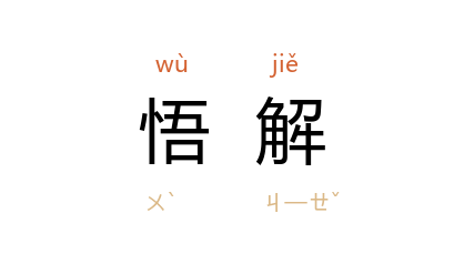 引明 唐顺之 《仪宾李公墓志铭》:“﹝公﹞读书善悟解,洞於声律,尤工字书,得 子昂 体。”郭沫若 《文艺论集·神话的世界》:“我们在这些地方可以悟解许多智慧。”