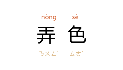 引宋 苏轼 《宿望湖楼再和》诗:“新月如佳人,出海初弄色。”金 董解元 《西厢记诸宫调》卷五:“过雨樱桃血满枝,弄色的奇花红间紫,垂柳已成丝。”明 贾仲名 《升仙梦》第一折:“桃也再不去向阳弄色。”清 许光治 《碧玉箫》曲:“晴弄色,蕉影纱窗外,纔春去也人无赖!”