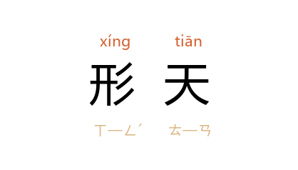《山海经·海外西经》:“形天 与 帝 至此争神, 帝 断其首,葬之 常羊之山,乃以乳为目,以脐为口,操干戚以舞。”