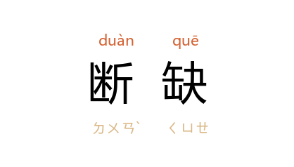 引明 文徵明 《跋宋高宗<石经>残本》:“右小字《石经》残本百叶,约万有五千言,前后断缺,无书人名氏。”《少室山房笔丛·经籍会通二》引 陆文裕 《藏书目序》:“间有残本不售者,往往廉取之,故余之书多断闕。”清 俞樾 《春在堂随笔》卷二:“碑额断缺,无从辨其姓氏。”