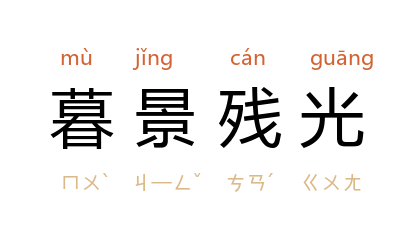 ⒈ 景,日光。暮景残光指夕阳残照。比喻风烛残年,余日无多。