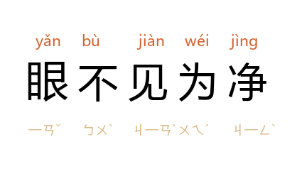 ⒊ 比喻对不合自己心意的人或事,不去看,不去想,心里没有烦恼便觉得清净。
