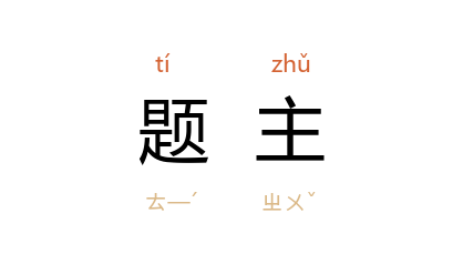 ⒈ 旧丧礼,人死后,立一木牌,上写死者衔名。用墨笔先写作“×××之神王”,然后于出殡之前请有名望者用朱笔在“王”字上加点成为“主”字,谓之“题主”。亦称“点主”。