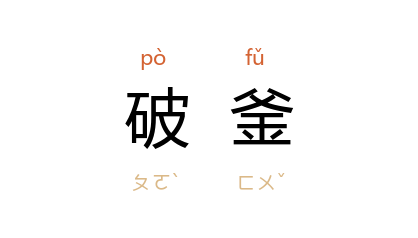 引宋 苏轼 《黠鼠赋》:“人能碎千金之璧,不能无失声於破釜;能搏猛虎,不能无变色於蜂蠆。”清 鲁一同 《小车辚辚》诗:“竹头木屑载零星,呕呀啁哳行不停,破釜堕地灰痕青。”叶圣陶 《穷愁》:“继之即煮粥。伏室隅破釜侧,火纔举,烟弥一室,缕缕折入母鼻。”