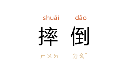 例如:「他不慎摔倒在地。」